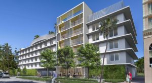 The developer wants to rezone it from “hospital district” to “multifamily residential-medium intensity.” This would allow it to convert the 88 assisted living rooms into 110 hotel rooms. In addition, the facade would be renovated, the hotel lobby would be built on the south end of the property, a 20-seat cafe would be added on the first floor, and a rooftop pool deck with a small cafe would be created. The 29 surface parking spaces would be valet only.